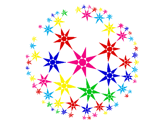 Here are quasi-{7,3} and quasi-{11,3} tessellations with stars in place of the larger polygons.