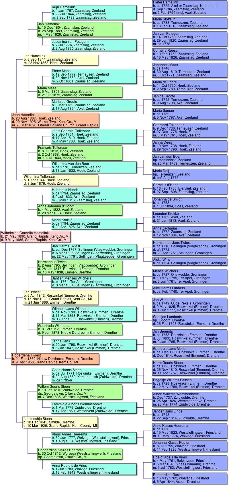 | Seventh Generation: beginning with Pieter Hamelink (b. 1695) | |
